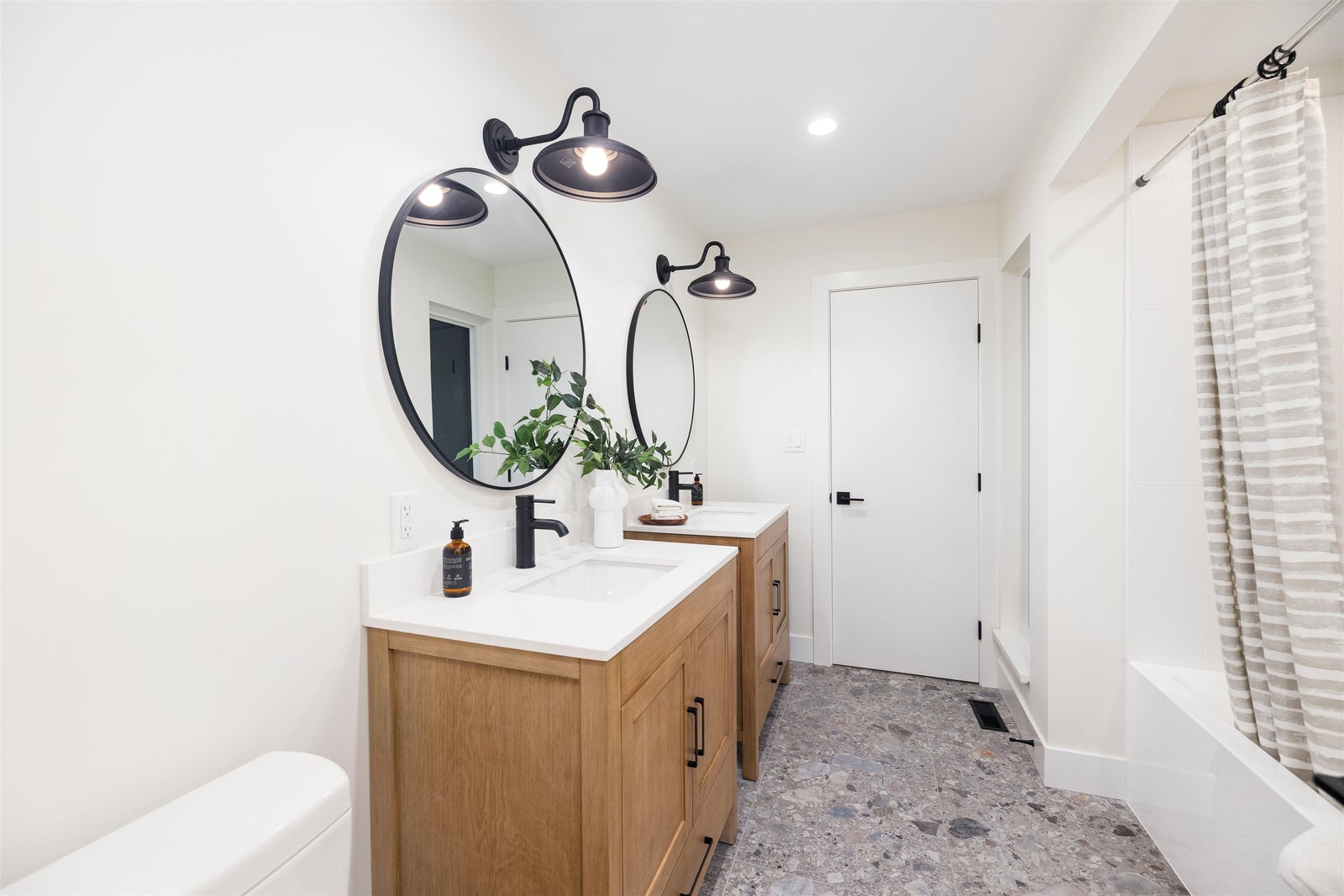Amazing opportunity on a quiet street! FULLY RENOVATED 5 bed, 4 bath, home has been redesigned with modern finishes & thoughtful details throughout. The main level offers a bright, open layout anchored by a stunning feature fireplace & a chef’s kitchen with quartz counters, stainless steel appliances & a large island. Seamless indoor-outdoor flow leads to expansive decks and a flat yard perfect for entertaining. Upstairs, the primary suite boasts a walk-in closet & luxurious ensuite, while 2 additional bedrooms share a Jack & Jill bath. The lower level is easily suitable, featuring a spacious rec room, wet bar, two bed, full bath, & laundry. A double tandem garage & excellent storage complete this turnkey home close to schools, parks, Lynn Valley.