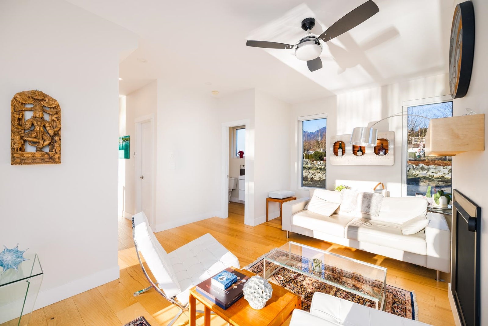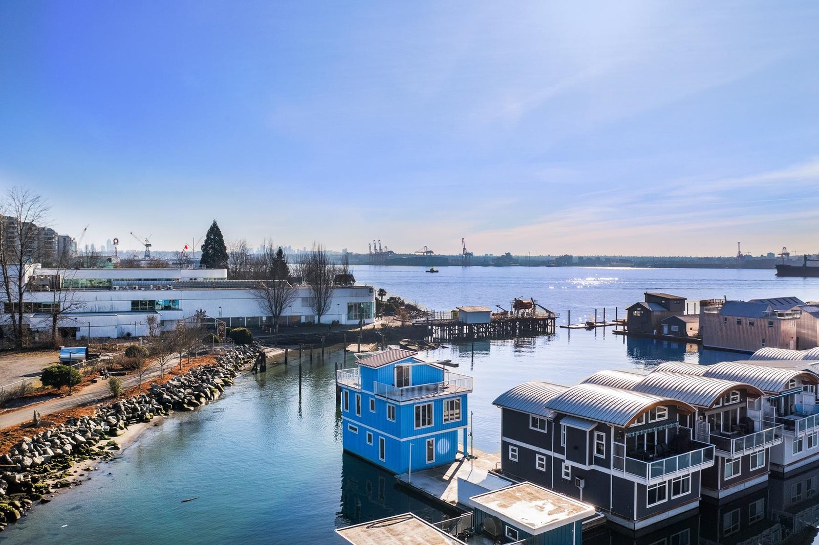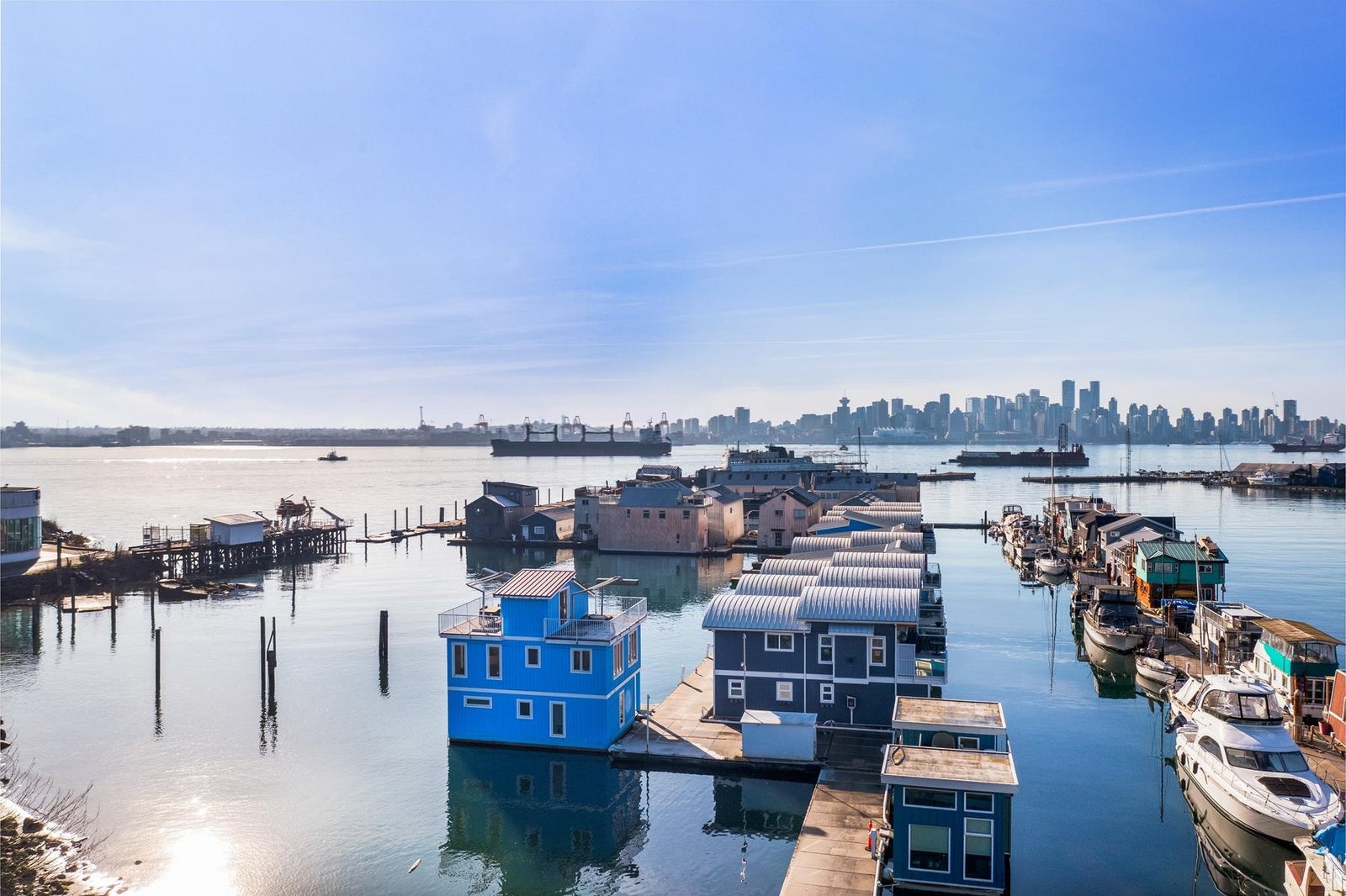 Experience the ultimate waterfront lifestyle at Mosquito Creek Marina in this newer built floathome designed for relaxed West Coast living. The highlight is a spectacular 528 sq ft rooftop deck with panoramic views, complete with water, power, and gas for effortless entertaining or relaxing year-round. Smart reverse-plan layout maximizes light and views. Entry level offers a spacious foyer, two bedrooms, elegant 5-piece bath with separate soaker tub and shower, plus laundry and storage. Upstairs features open-concept kitchen and dining, pantry, powder room, and bright living room with gas fireplace opening to a sunny south-facing deck. Bonus 192 sq ft flex room ideal for office, guests, or studio. Pets and rentals, including AirBnB, allowed in this family-friendly community.